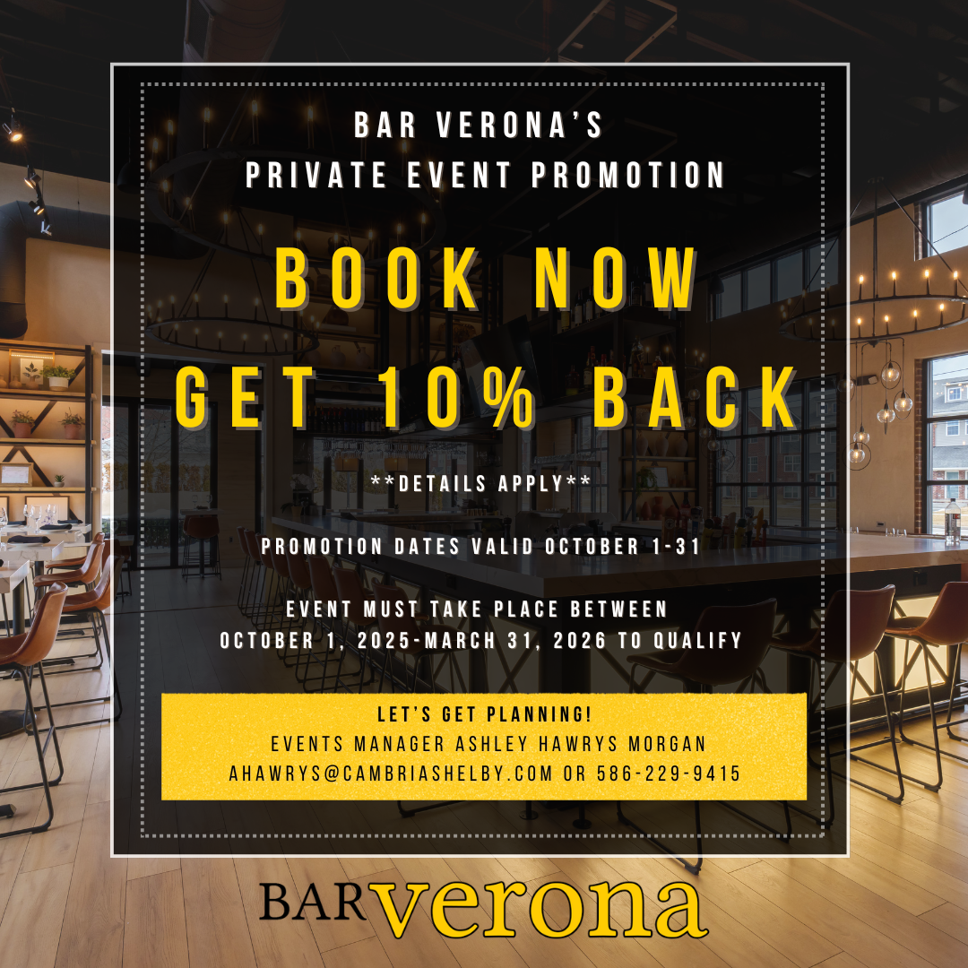 Located in Washington Township, Bar Verona is a place of enjoyment and relaxation in an exclusive environment. Indulge in our thoughtfully crafted menu featuring classic recipes with a modern twist. Enjoy a refreshing drink with our lively cocktail and wine selection.